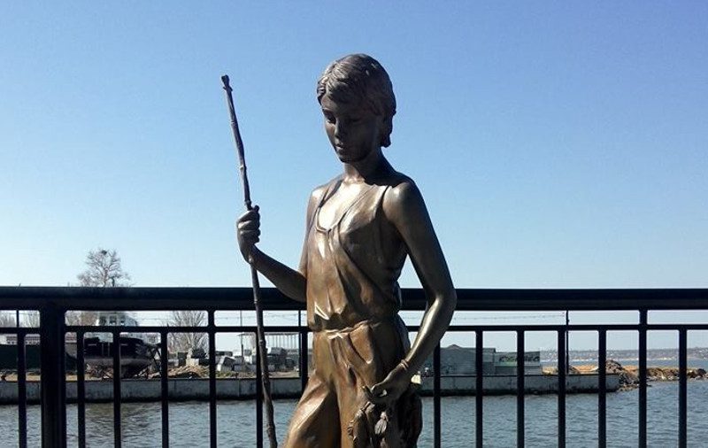 Незвичайна скульптура, яка доводить, що увічненим у камінь чи метал можуть бути не лише історичні особистості. Така незвичайна скульптура, практично з моменту появи, підкорила серця миколаївців. На зріст бронзовий хлопчик майже 170 сантиметрів. Свій дім хлопчик знайшов на арт-просторі “8 причал” поряд із річковим вокзалом.