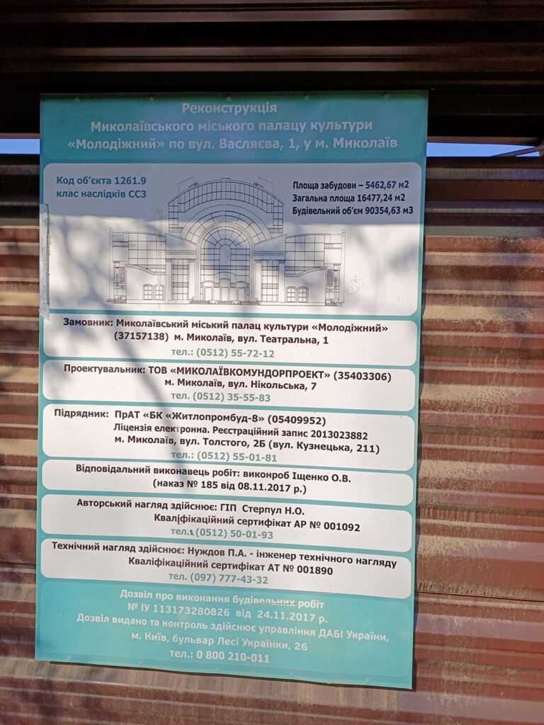 Така колосальна сума обумовлена масштабністю робіт, адже у ПК “Молодіжний” повністю перебудують підвали, глядацькі зали, систему освітлення, встановлять вантажний ліфт у будівлі, який може підняти більше 600 кг вантажу та багато іншого. Також, відповідно до проекту, на території з’явиться парковка на 49 місць, для цього все-таки доведеться знести частину дерев, але замість них виконавці робіт повинні посадити нові зелені насадження. Зважаючи на те, що загальна вартість реконструкції коштує більше 350 млн грн, міський бюджет такі витрати самостійно не потягне, тому у Миколаєві тендер відіграли з надією, що частково витрати покриє Державний фонд регіонального розвитку.