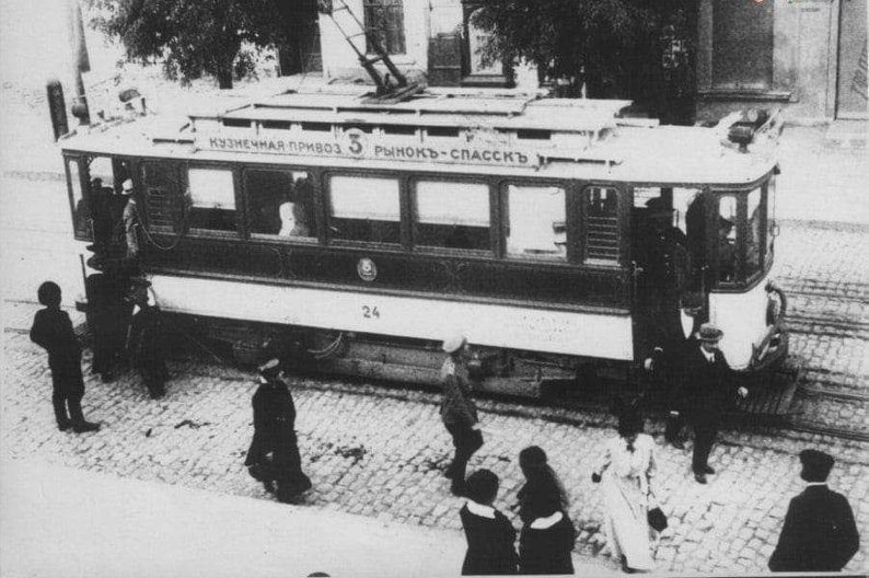 У тому ж 1915-му році, коли лише запустили перший трамвай на електричній тязі, довжина трамвайних колій складала 17 верст 125 сажнів. Це дорівнює 18 км 400 м. На лінії виходили від 31-го до 38-ми вагонів.