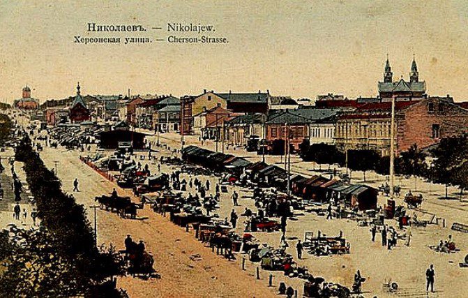 Трохи більше ніж сто років тому, кілька кварталів у центрі міста було зайнято міським ринком. Такий порядок було встановлено ще адміралом Грейгом. Торгова площа, згідно з деякими історичними документами, простягалась на території від сучасних Соборної до Декабристів, і від Центрального проспекту до Дунаєва. На той час через міський ринок проходили маршрути миколаївської конки, яка виконувала функції громадського транспорту.