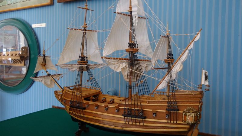 У Миколаївському музеї суднобудування і флоту є понад сотні різноманітних моделей кораблів. От, наприклад, фрегат “Святий Миколай” добре розкриває епоху вітрильного кораблебудування в акваторії Чорного моря. До речі, це перше судно, яке було побудоване на Інгульському верфі. У далекому 1790-му.