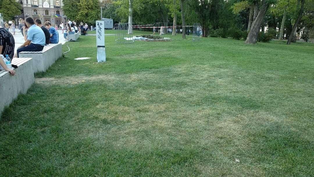 “Сьогодні газон не полили. І так буває часто. Шланг вириває і море води валить на площу, а не на траву. Можливо через те, що на шланг наступають”, – повідомила Ольга Голубенко.